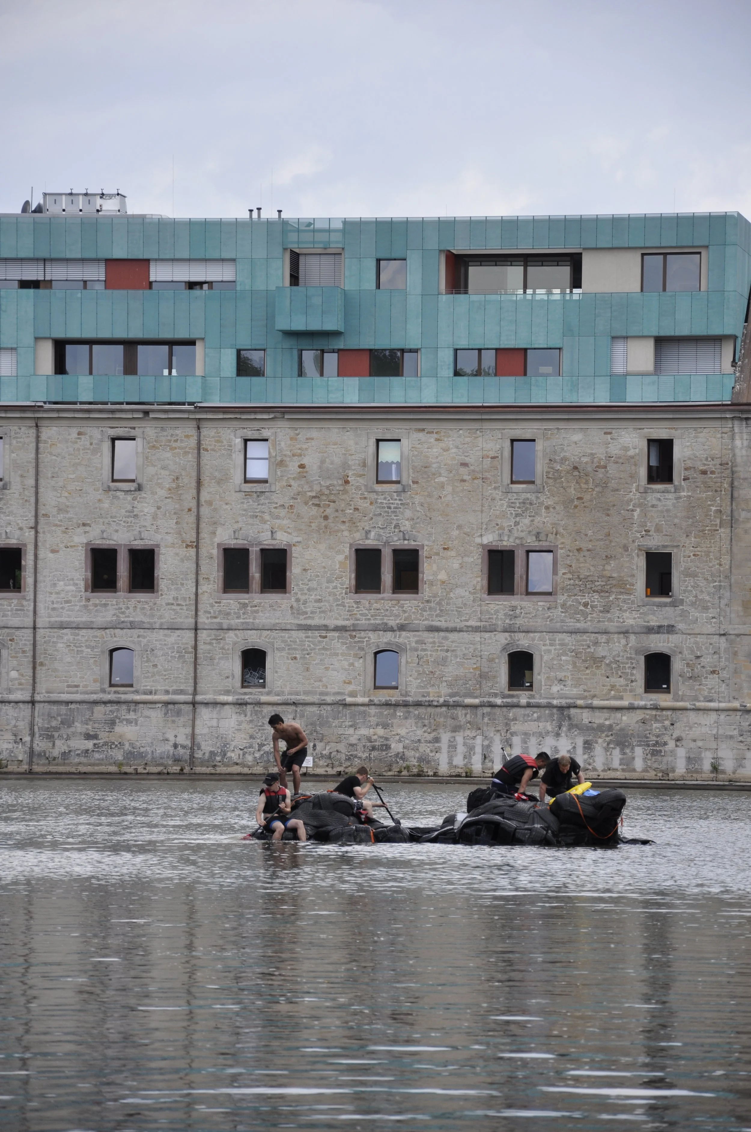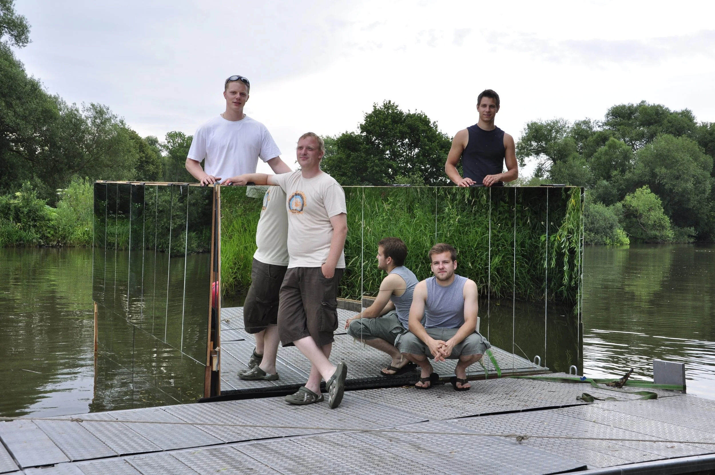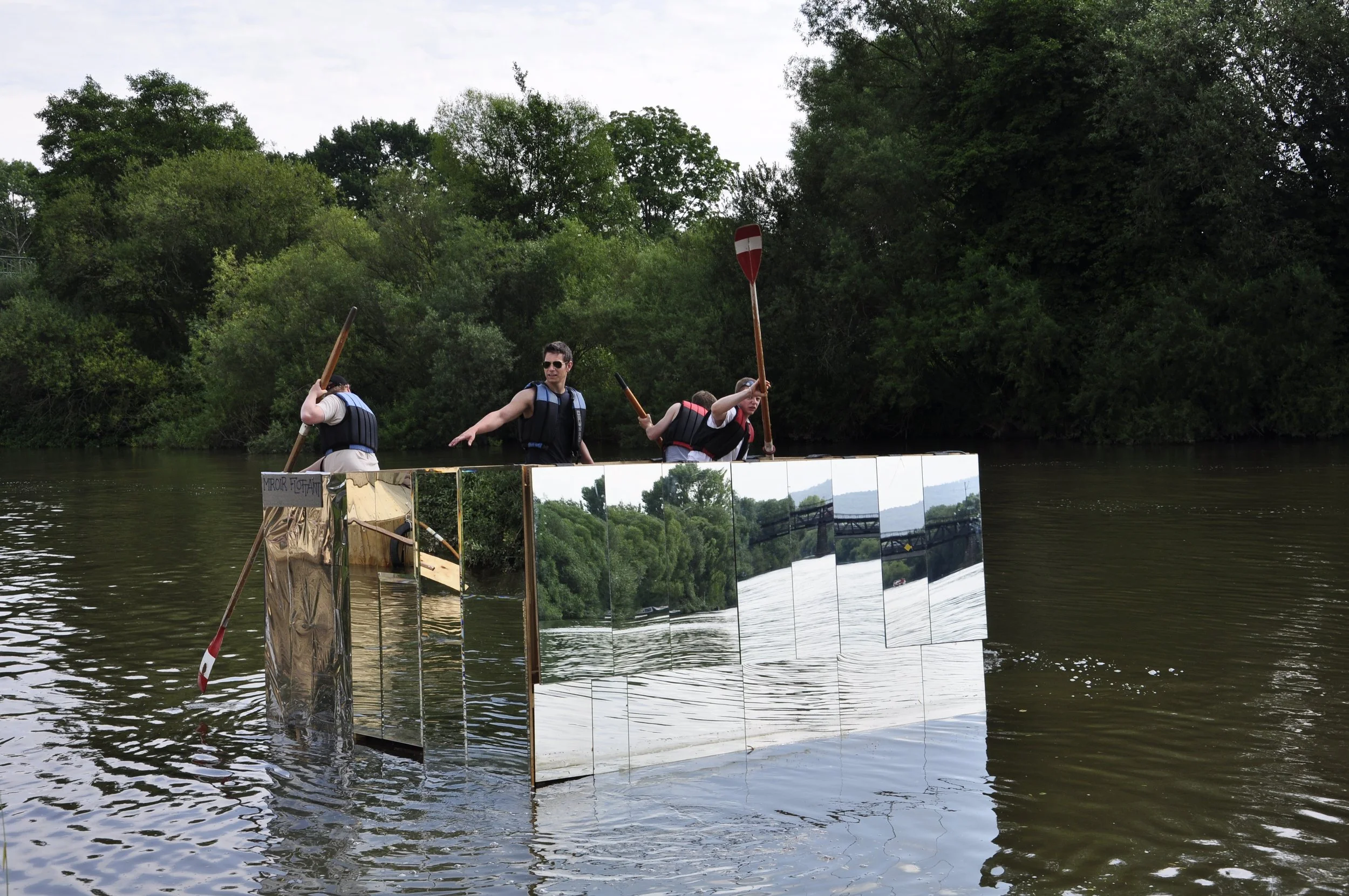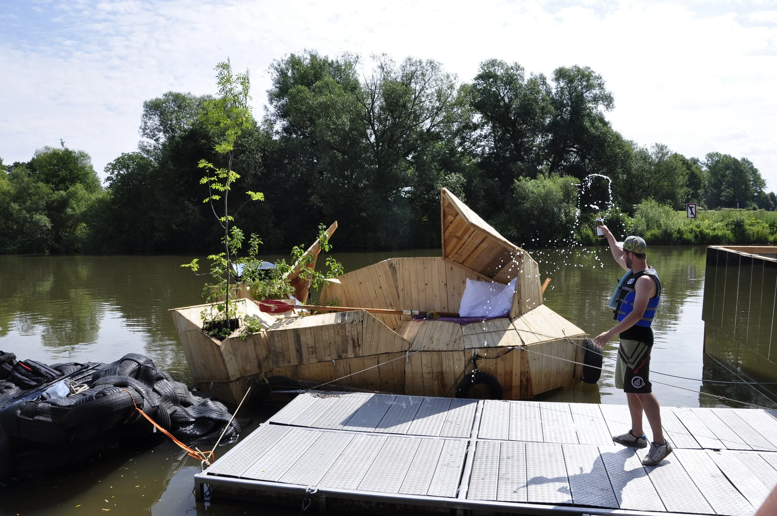 NACH EINEM SEMESTER INTENSIVER GRUPPENARBEIT von der Konzeption, über den Entwurf, die Materialbeschaffung und die Konstruktion IN DER EXPERIMENTALBAUWERKSTATT DES FACHGEBIETES, WURDEN DIE FLÖSSE Während der Rundgangswoche ERFOLGREICH zu wasser gelassen. ALLE schafften DIE FLUSSFAHRT INKLUSIVE SCHLEUSENGANG UND ZWISCHENSTOPP BIS ZUM ANLANDEN MIT ÜBERNACHTUNG auf gut Kragenhof.